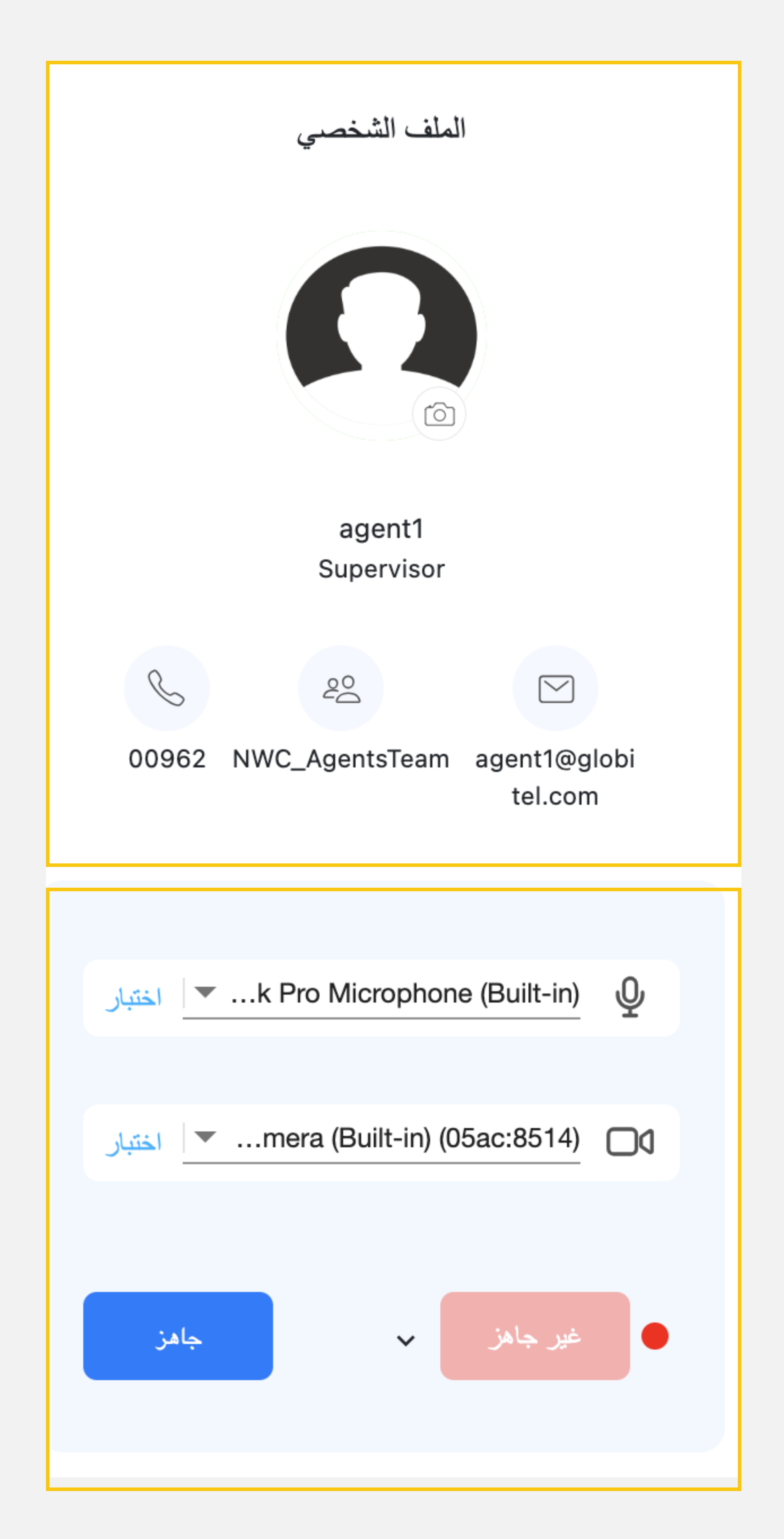 - صورة الملف الشخصي: صورتك المعروضة أثناء مكالمات العملاء.