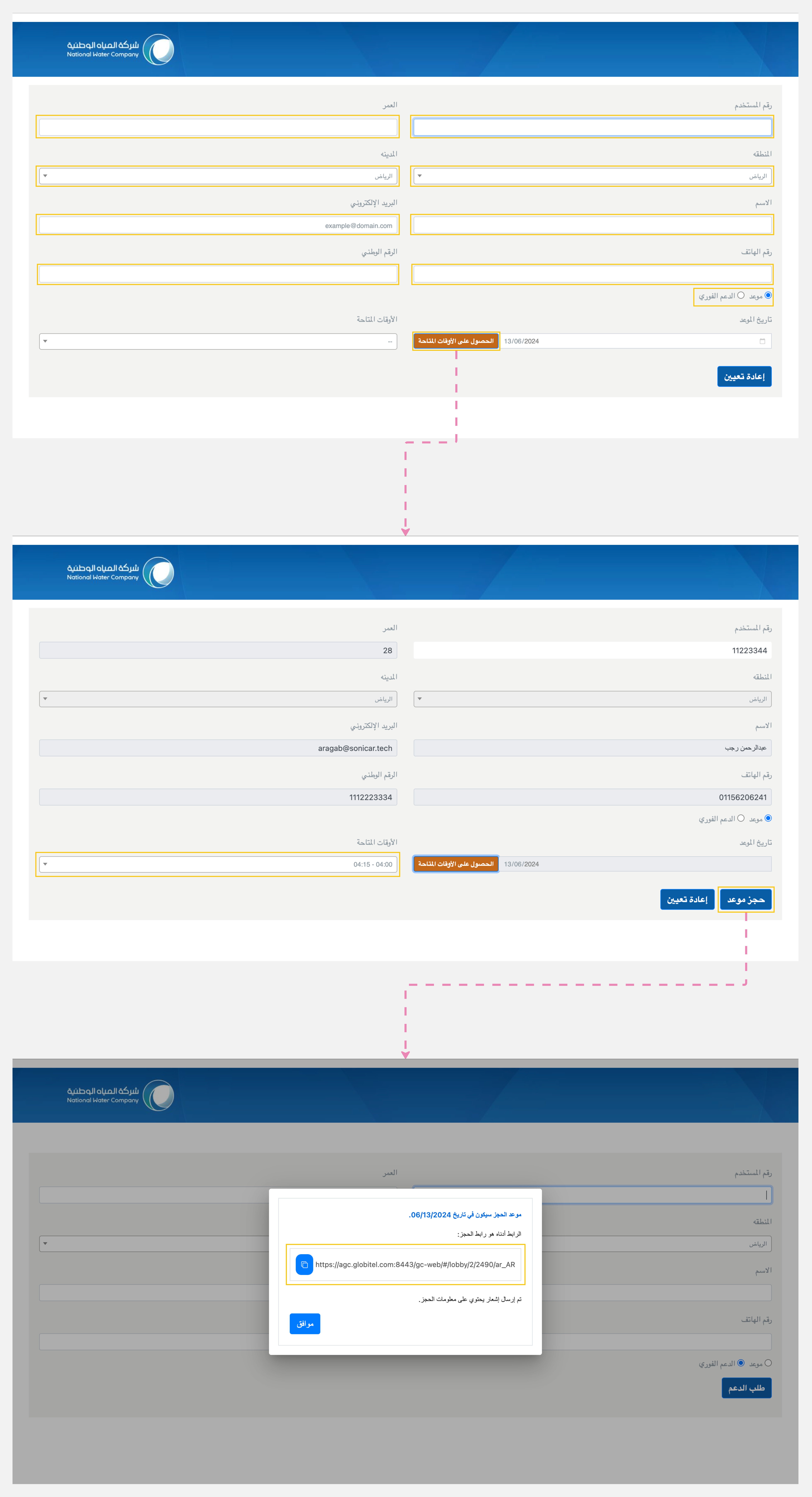 | وقت الموعد | هذا يعرض تاريخ ووقت الموعد الذي تم حجزه من قبل العميل. |