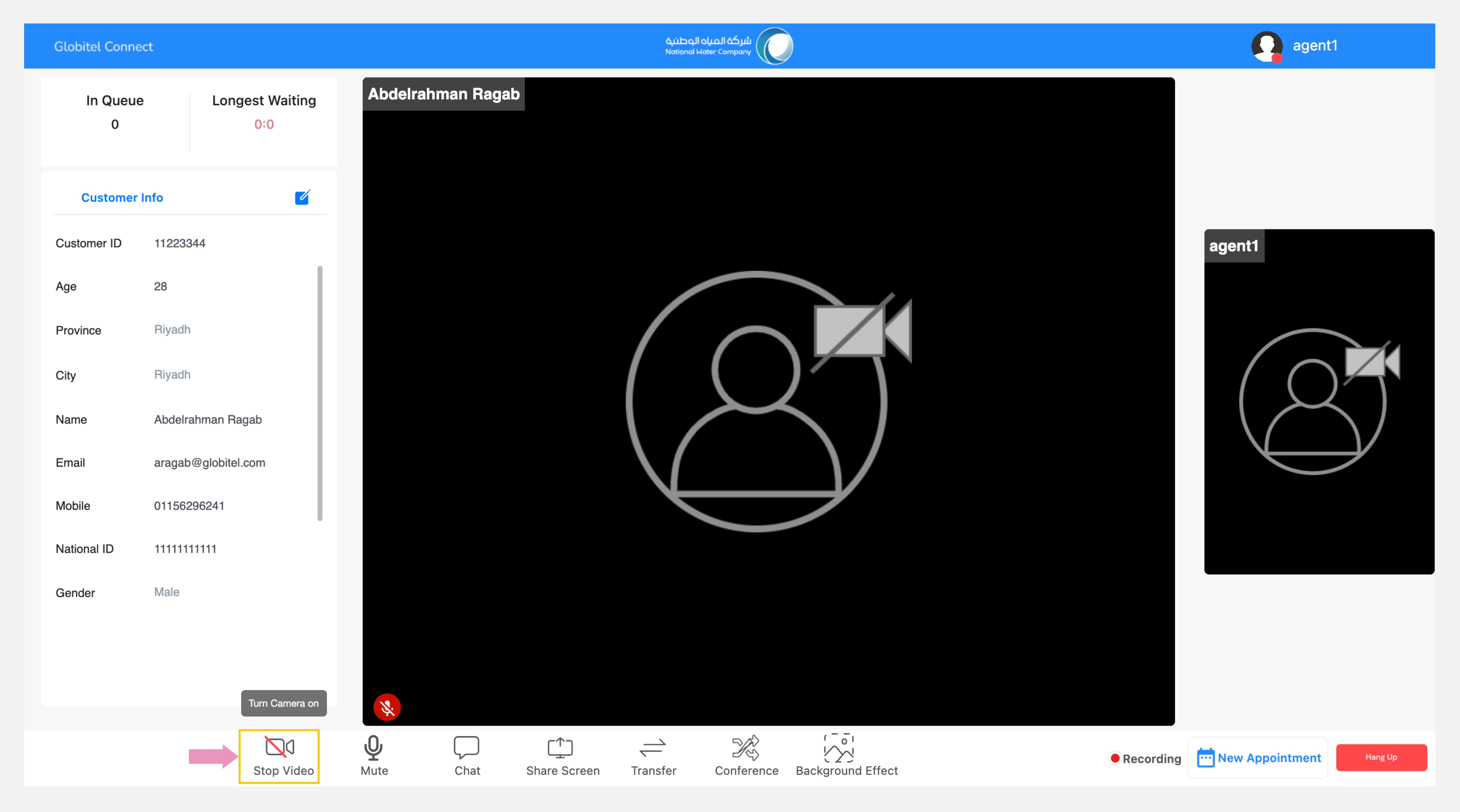 Once you have answered the call, the conference room will appear, enabling interaction with the customer. You view the customer's photo and hear their voice.