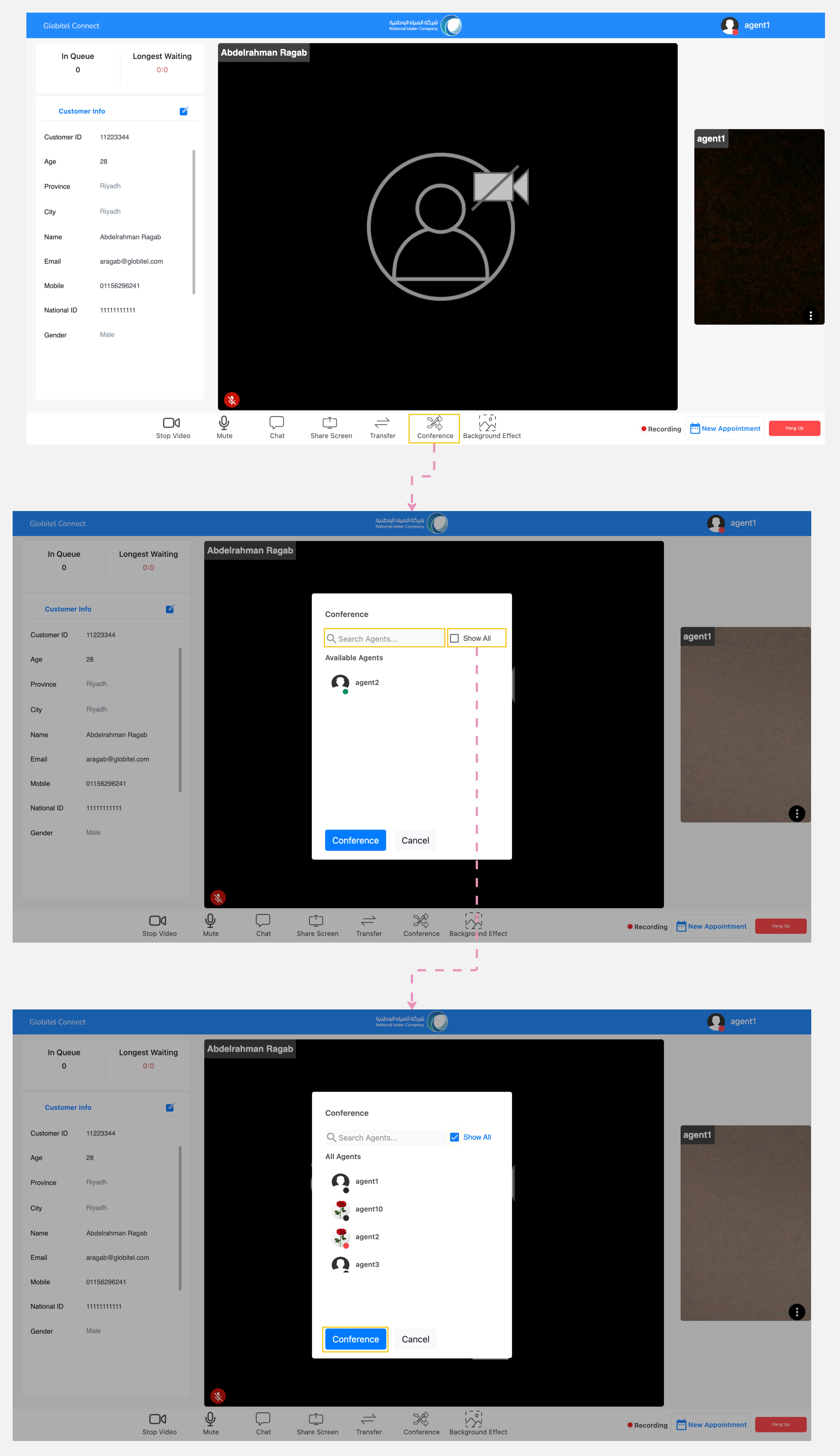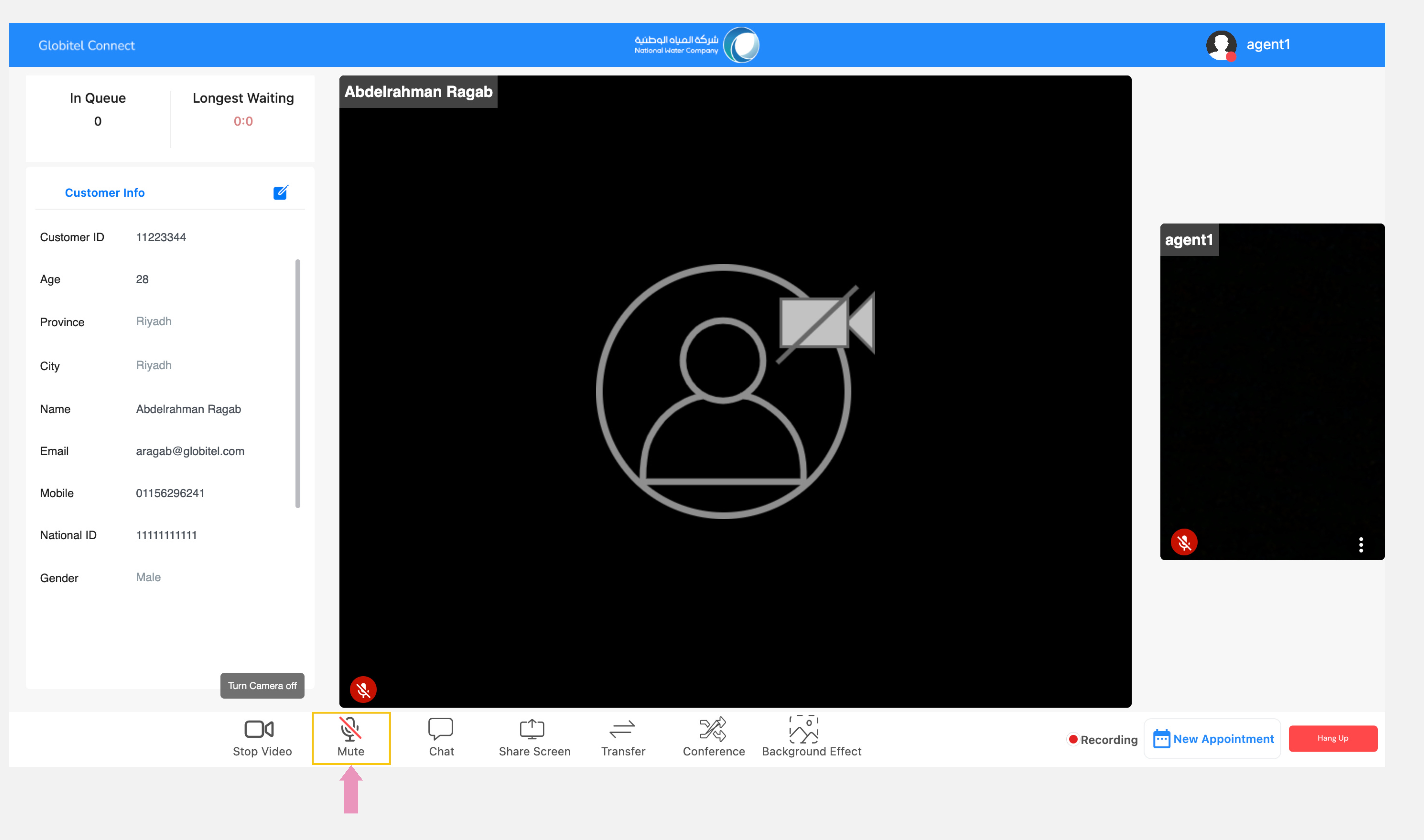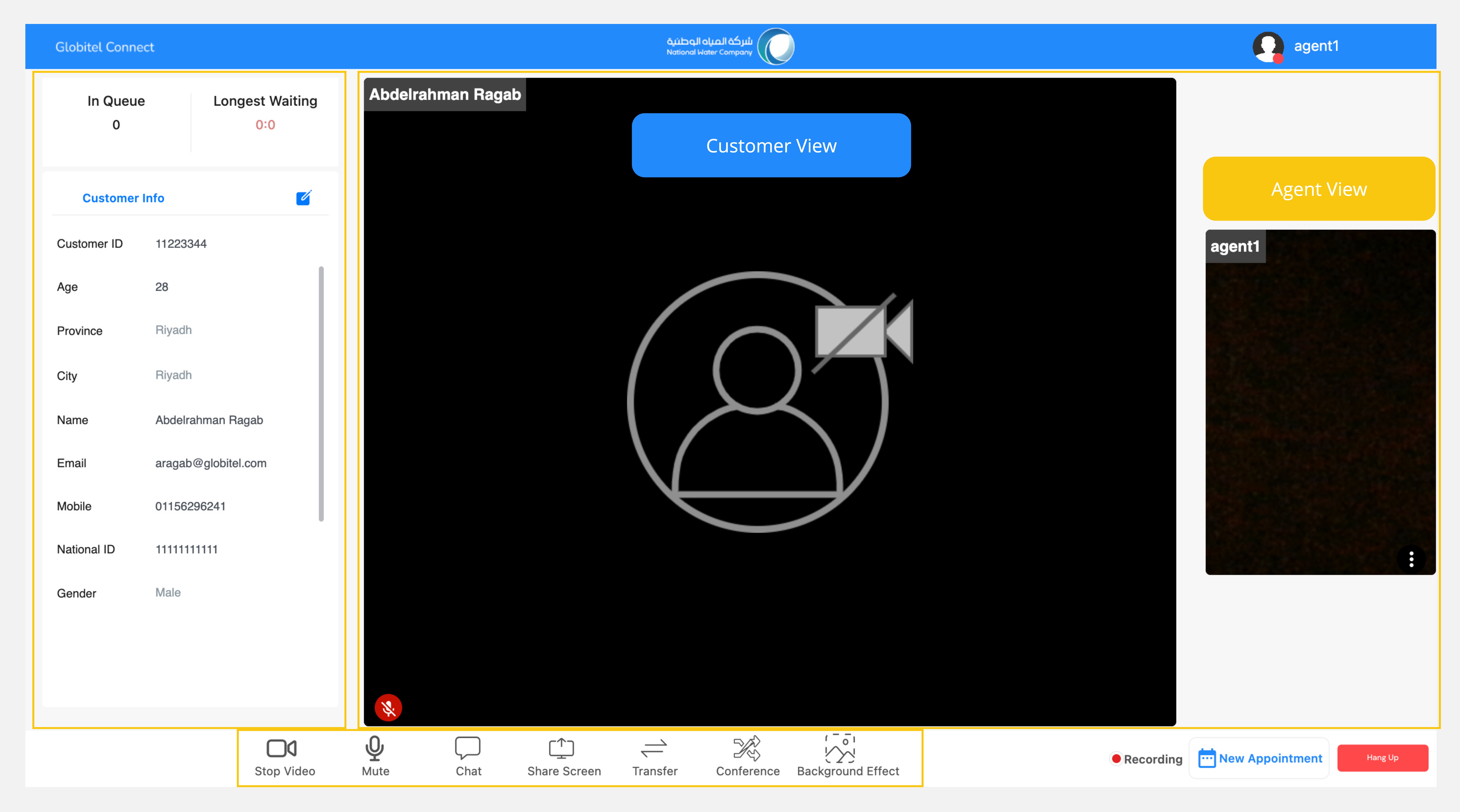- Meeting Panel: This section displays the live photos and microphones status of the customer and yourself.