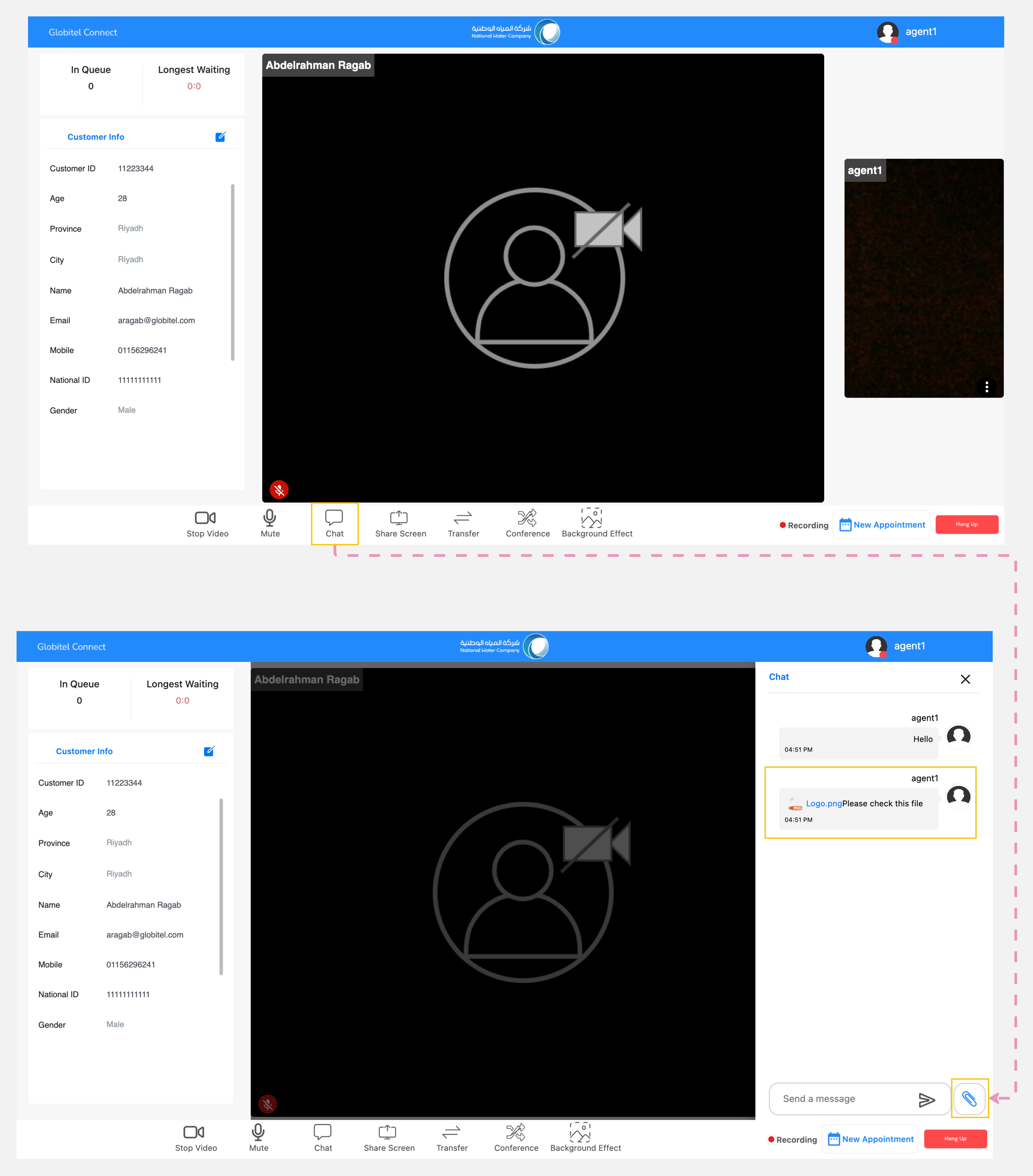 If you have important files related to an interaction, download that before the call ends. Otherwise, the files from the chat will be lost when the call is ended.